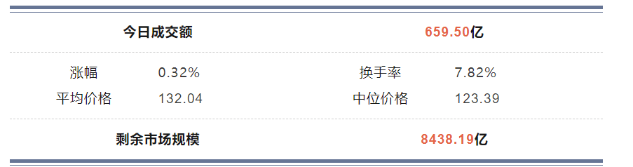 2023年7月18日转债市场成交额659.50亿元,换手率7.82%。
