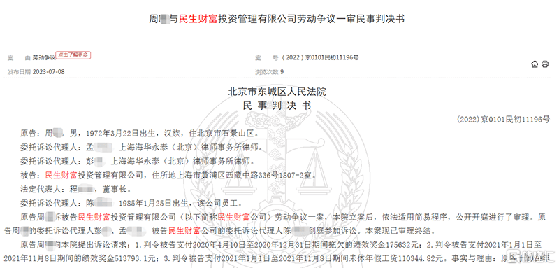 近日,中国裁判文书网公布这样一则案件。揭露了泛海控股集团旗下的百亿级私募民生财富与其高管的人事纠纷。该名高管的绩效奖金削减了四成,愤而打官司讨薪,法院怎么判?