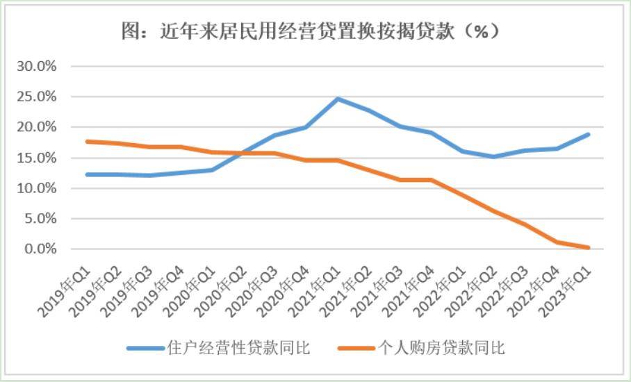 2022年以来,各大城市的二手房交易量明显大于新房,二手房价格表现也明显弱于新房(即跌幅大于新房)。此外,为纾困中小微企业,银行推出了房抵经营贷(该产品利率低于按揭利率),因此多因素综合之下,导致经营贷置换房贷增加,房贷余额表现为下降。