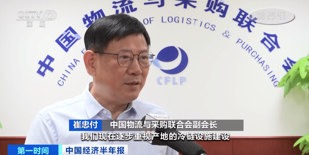 中国物流与采购联合会副会长 崔忠付:我们现在逐步重视产地的冷链设施的建设,特别是冷库建设这种投资加快。据我们统计,1月至6月,新投入使用的冷库当中,自动化的冷库占到了九分之一。不少企业在逐步投入使用一些智能化的调度系统,效果最好的运输配送时间能够节省20%以上。