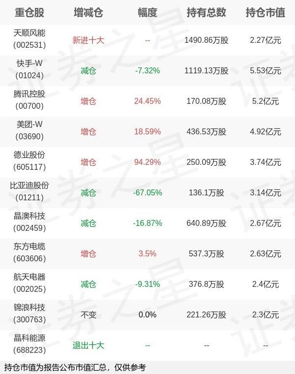 7月19日银华基金旗下李晓星 张萍管理的银华心怡灵活配置混合型基金公布中报,近1年净值增长率-15.5%。与上一季度相比,该基金前十大重仓股新增天顺风能;其中快手-W持仓占比7.21%,为该基金第一大重仓股;晶科能源等退出前十大重仓股;详细数据如下: