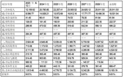 国家有关法律法规未对企业的经营期限有所限制,本次预测设定在正常情况下,企业将一直持续经营,因此,标的公司预期现金流量按永续经营计算。其中,第一阶段为2023年6月至2028年,在此阶段根据标的公司的经营情况及经营计划,收益状况处于变化中;第二阶段自2029年起为永续经营,在此阶段标的公司将保持稳定的盈利水平。预测结果见下表。