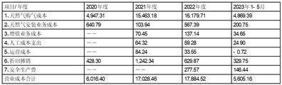 标的公司自2022年7月加入天然气国家管网后,外购天然气成本有显著下降。其中,2022年11月至2023年1月单位平均成本略有增加,主要系标的公司从中石油购气指标不足,临时采购了成本较高的部分LNG。