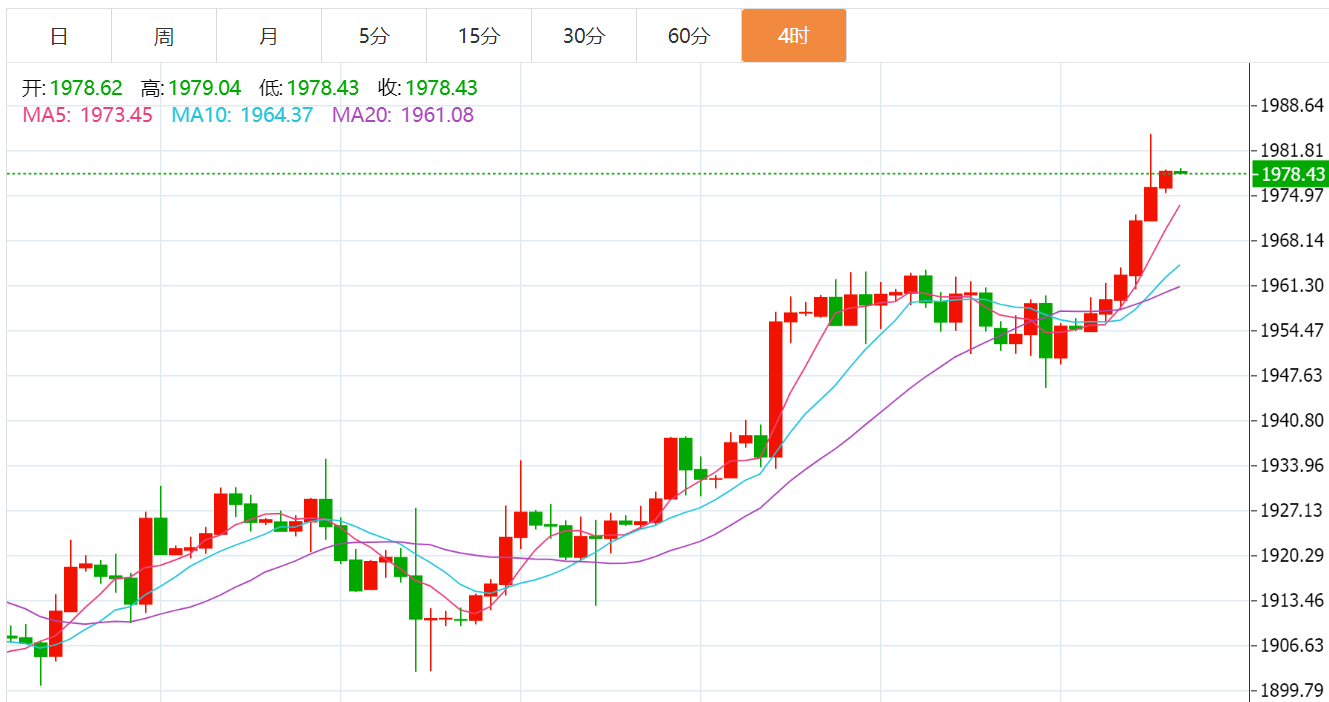 黄金技术面分析:黄金目前处于1960—1986区间进行激烈博弈,晚间砸盘直接上冲1984,跌也跌不下,隔夜看似跌破1950关口,有望迎来大幅回落,但最终还是峰回路转,硬是涨了回来,继续维持在1950—1984区间震荡。现在也是成功从空头趋势转为多头趋势了,短期多头太过强劲,上周大阳收尾,日线也是大阳拉升破区间,MA5—MA10均线呈金叉之势,一旦明确突破1964,那么多头将是如虎添翼,可能1980阻力密集区也抵挡不住下波上涨。