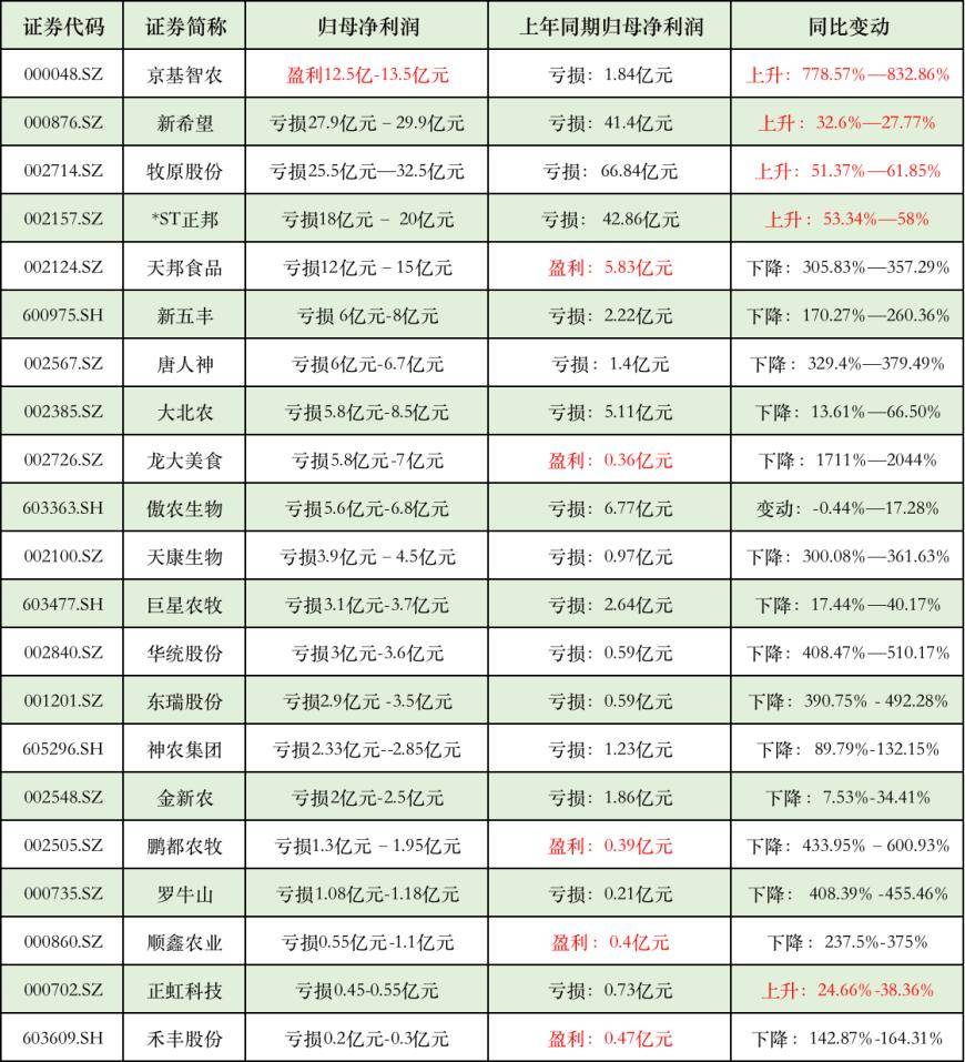 而除了京基智农外,牧原股份、新希望(000876.SZ)、*ST正邦(002157.SZ)和正虹科技(000702.SZ)4家企业今年上半年亏损有不同程度的收窄。