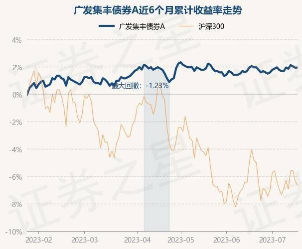 7月18日,广发集丰债券A最新单位净值为1.138元,累计净值为1.382元,较前一交易日上涨0.0%。历史数据显示该基金近1个月下跌0.09%,近3个月上涨0.09%,近6个月上涨1.97%,近1年上涨3.36%。该基金近6个月的累计收益率走势如下图: