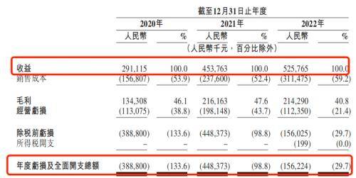 招股书显示,2020年-2022年(以下简称“报告期”),百望股份的收入分别为2.91亿元、4.54亿元和5.26亿元;同期亏损总额分别为3.89亿元、4.48亿元和1.56亿元,三年合计亏损金额高达9.93亿元。