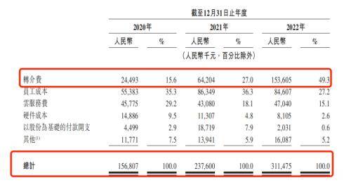 所谓转介费,是公司就数字精准营销服务向营销代理支付的费用。除了自有营销团队,百望股份还通过委聘营销代理识别潜在金融产品用户,并推广金融服务提供商的金融产品。