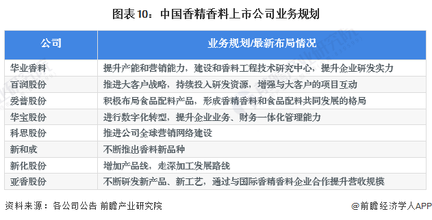 中国香精香料企业业务规划的重点包括:增加新产品、数字化转型、渠道布局等。主要上市公司香精香料业务规划汇总如下: