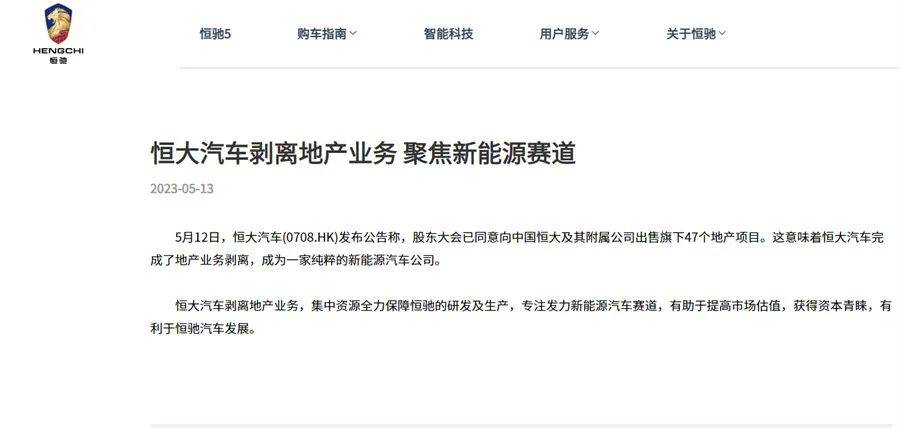 及时为母公司负债做贡献 恒大汽车2元甩卖地产业务的目的?