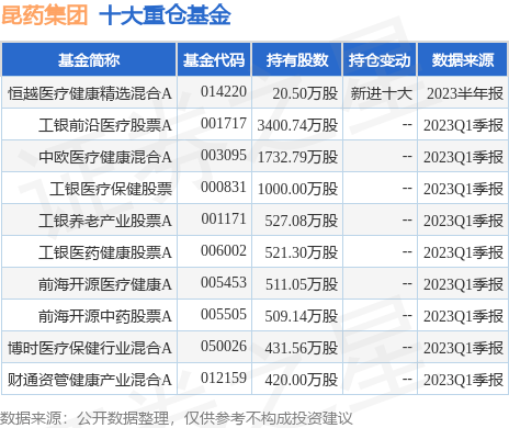重仓昆药集团的前十大公募基金请见下表: