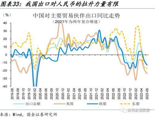 中期来看,通胀粘性的差异或使美欧货币政策走向收敛,基本面的持续分化也不支持美元大幅走弱。一方面,美国新冠疫情期间向中低收入人群的超额财政补贴明显抬升了居民的薪资预期,6月非农时薪增速超预期录得4.4%,或意味着美国的去通胀“下半场”将面临服务业粘性的影响;而受较低财政补贴力度的影响,欧元区的“通胀-薪资螺旋”并不强,或意味着欧洲去通胀的阻力更弱,欧元区加息或也临近尾声,美欧货币政策将趋于收敛。另一方面,受制于财政支出等约束,本轮美欧经济下行中,欧元区或更为弱势,美欧基本面的分化也将对美元形成一定支撑。