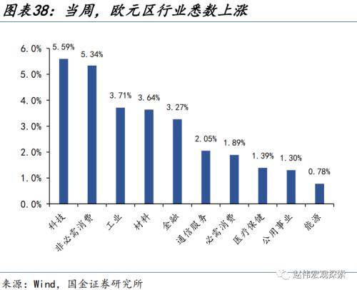 从美国标普500的行业涨跌幅来看,本月美股行业全线上涨。其中可选消费、工业、材料、信息技术和金融领涨,分别上涨11.99%、11.17%、10.81%、6.55%和6.53%。从欧元区行业板块来看,本月欧元区行业多数上涨。其中非必需消费、金融、公用事业、工业和材料领涨,分别上涨6.77%、4.81%、3.55%、3.02%和2.66% 。