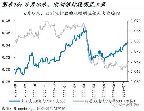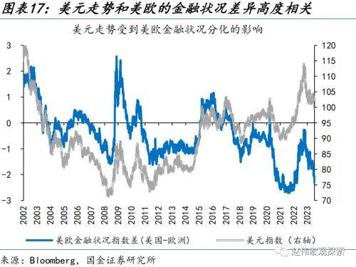 欧洲银行业危机的缓和与金融压力的缓释或是美元走弱的主因。本轮欧洲银行业危机滞后于美国,近期出现了明显缓和。近期欧洲银行股明显超涨、系统性重要银行加权CDS明显回落,均反映了市场担忧情绪的缓释。历史回溯来看,欧美金融条件差与欧元走势高度相关,伴随欧洲金融压力的缓释,欧元也重新赢得市场青睐。前期避险情绪主导下抛售欧元买入美元的交易,近期发生逆转;资金向欧洲的回流,支撑了欧元的汇率。