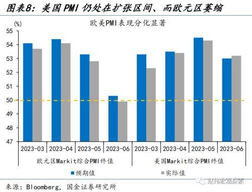中期来看,通胀粘性的差异或使美欧货币政策走向收敛,基本面的持续分化也不支持美元大幅走弱。一方面,美国6月非农薪资增速高达4.4%,去通胀“下半场”或面临服务业粘性影响;而欧元区“通胀-薪资螺旋”不强,美欧货币政策或趋于收敛。另一方面,受制于财政约束等,欧元区经济或更为弱势,美欧基本面的分化也将对美元形成支撑。