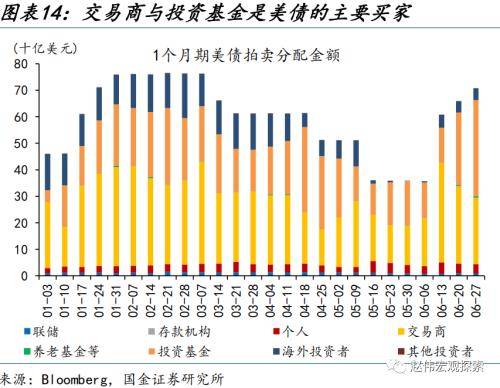 2)美债供给因素并非本轮美元与美债分化的主因。有观点认为,6月以来的分化主因供给因素对美债收益率的推升,但数据并不支撑:第一,6月净增的5200亿适销美债中91%均为短债,但期限利差反而收窄41bp。第二,美债并未“滞销”,各期限美债竞拍倍数不降反升。第三,当下市场流动性较充裕,一级交易商、投资基金等有能力消化美债供给。
