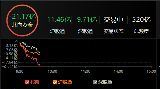 上证报中国证券网讯 7月19日10时07分,北向资金净卖出超20亿元,达到21.17亿元。