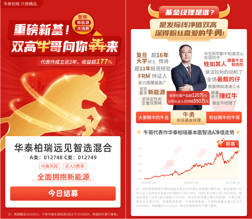 以至于在华泰柏瑞远见智选发售时,基金宣传海报做得那叫一个气势恢宏: