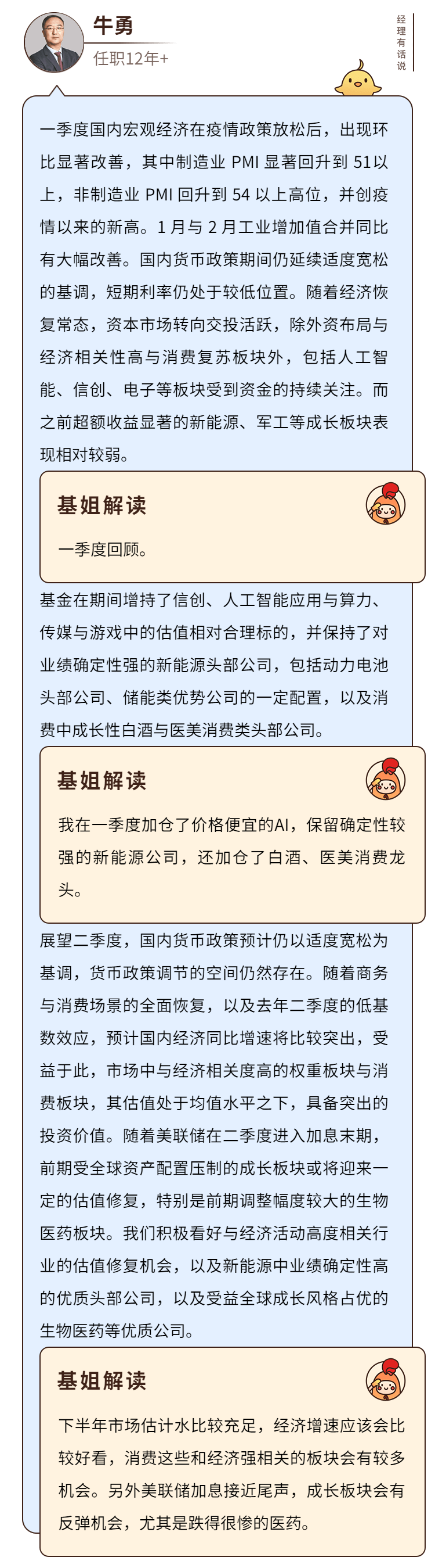 来看看牛勇在一季报里都说了些什么吧: