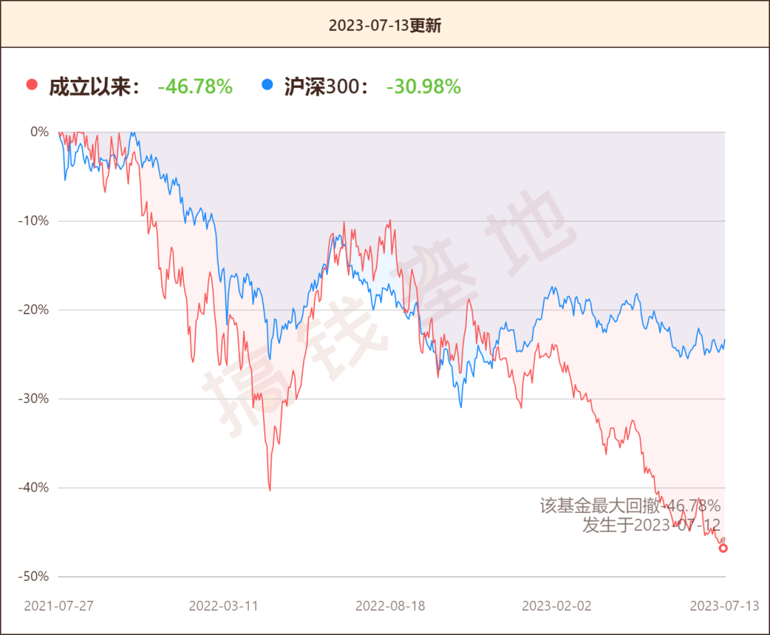 可以看到华泰柏瑞远见智选A回撤幅度基本就没怎么跑赢过沪深300指数,而且近期还有继续扩大回撤幅度的趋势,再跌下去可就要腰斩了。