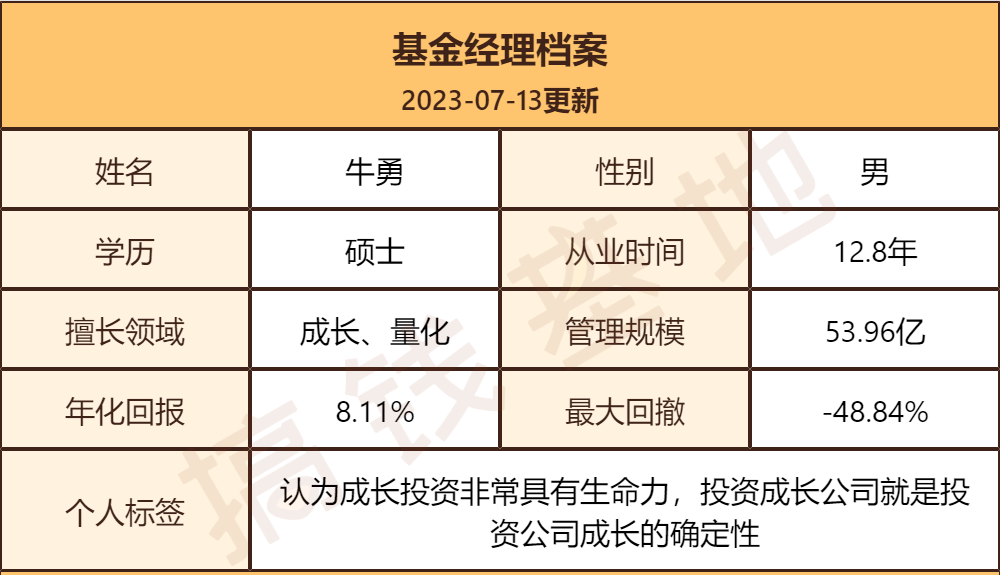 牛勇险企出身,又有多年量化投资背景和主动投资经验,是一位投资经验十分丰富的老将。