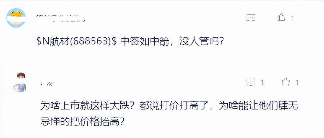 还有的投资者表示道:“为啥上市就这样大跌?都说打价打高了,为啥能让他们把价格抬高?”