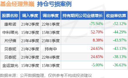 焦巍管理的银华富利精选混合A基金在21年2季度买入康希诺,在持有3个季度后在22年1季度卖出。持有期间的估算收益率为-52.12%,持有期间康希诺在2021年到2022年的年报营业总收入降幅为75.94%。