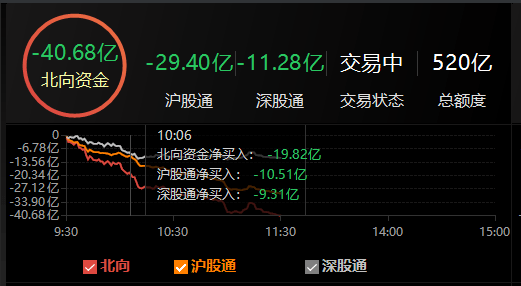 原标题:北向资金半日净卖出40.68亿元