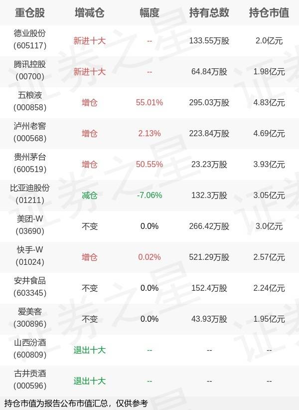 7月19日银华基金旗下李晓星 张萍管理的银华心享一年持有期混合型基金公布中报,近1年净值增长率-18.11%。与上一季度相比,该基金前十大重仓股新增德业股份,腾讯控股;并对五粮液增仓104.7万股,为该基金第一大重仓股;山西汾酒,古井贡酒等退出前十大重仓股;详细数据如下: