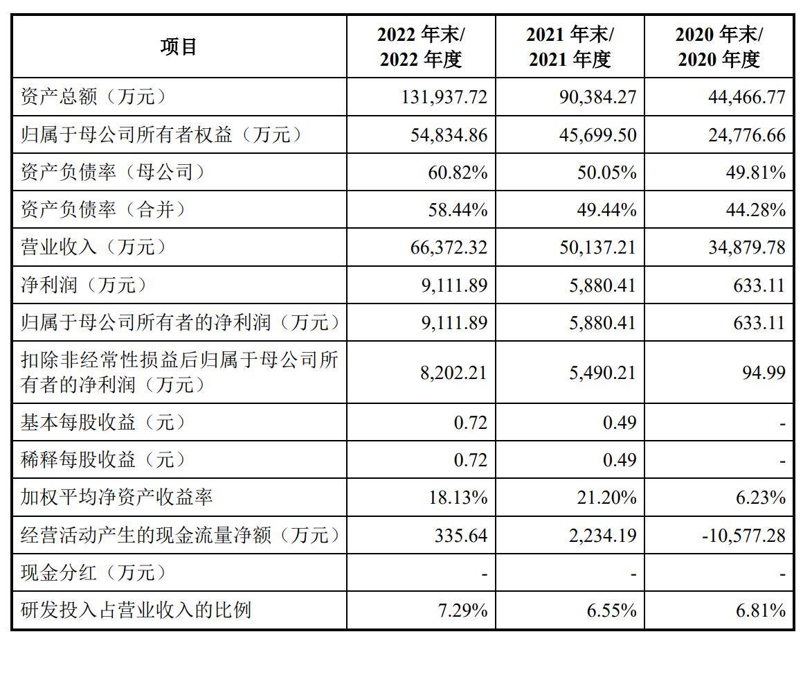 招股书显示,京仪装备2020年、2021年、2022年营收分别为3.5亿元、5亿元、6.64亿元;净利分别为633万元、5880万元、9112万元;扣非后净利分别为94.99万元、5490万元、8202.2万元。