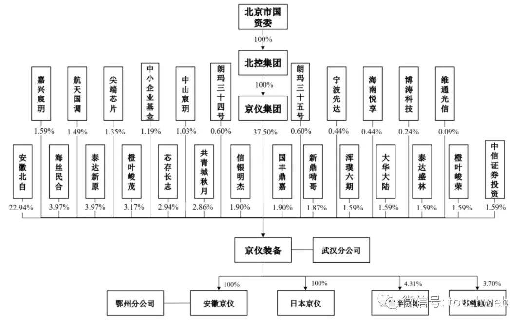 IPO后,京仪集团持股为28.13%,安徽北自持股为17.2%,海丝民合、泰达新原分别持股为2.98%,橙叶峻茂持股为2.38%,芯存长志持股为2.21%,共青城秋月持股为2.14%,信银明杰持股1.43%;