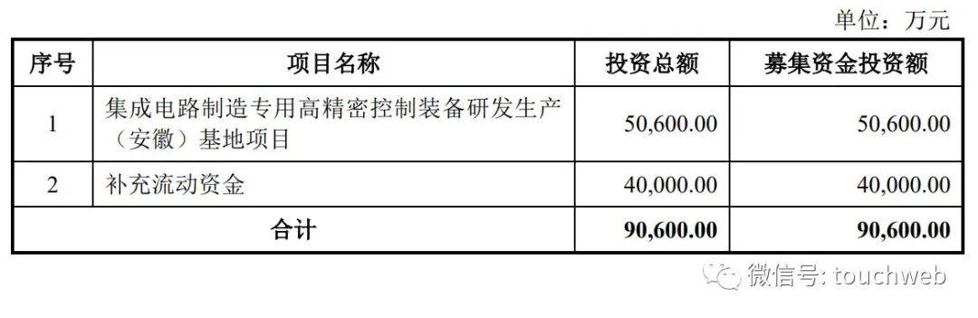京仪装备计划募资9.06亿元,其中,5.06亿元用于集成电路制造专用高精密控制装备研发生产(安徽)基地项目,4亿元用于补充流动资金。