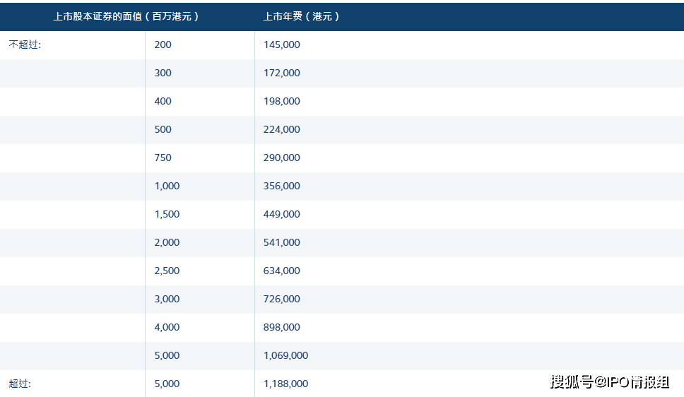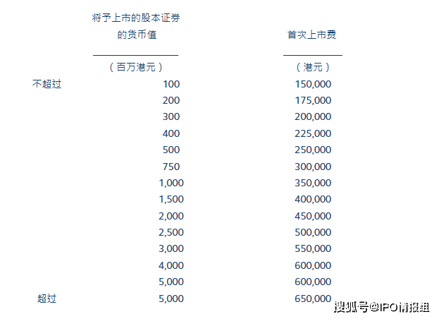 包括:债务证券及结构性产品、单位信托、互惠基金、开放式投资公司、日后发行的费用、新发行的证监会交易征费、发行的交易费、经纪佣金费、发售现有证券的证监会交易征费、发售现有证券的交易费、第二上市费、公众利益实体年度征费、财务汇报局交易征费等。详细资料可见香港交易所《上市规则》附录八,链接:https://cn-rules.hkex.com.hk/sites/default/files/net_file_store/HKEXCN_SC_10056_VER25618.pdf