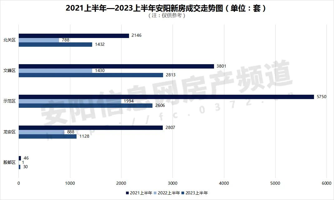 据安阳信息网房产频道不完全统计,2023上半年安阳新房成交约8009套,同比去年5101套,上涨57.01%;各区销量明显高于去年同期。