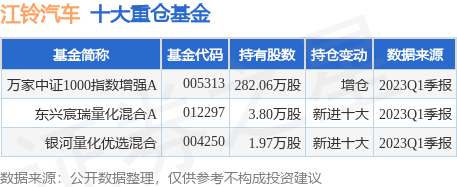根据2023Q1季报公募基金重仓股数据,重仓该股的公募基金共3家,其中持有数量最多的公募基金为万家中证1000指数增强A。万家中证1000指数增强A目前规模为33.57亿元,最新净值1.2794(7月18日),较上一交易日上涨0.17%,近一年上涨1.12%。该公募基金现任基金经理为乔亮。乔亮在任的基金产品包括:万家量化睿选混合A,管理时间为2019年8月21日至今,期间收益率为35.75%;万家沪深300指数增强A,管理时间为2019年9月6日至今,期间收益率为32.59%;万家中证500指数增强A,管理时间为2019年9月6日至今,期间收益率为63.96%。