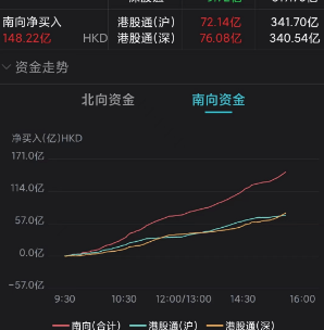 与A股的磨洋工相比,港股今天则精彩的多。早盘一度跌超2.5%恒生科技指数,午后翻红,恒生指数跌幅收窄至0.1%以内。南向资金净流入近150亿港元,从全天的走势来看,南下资金无惧港股调整,全天单边做多。