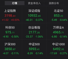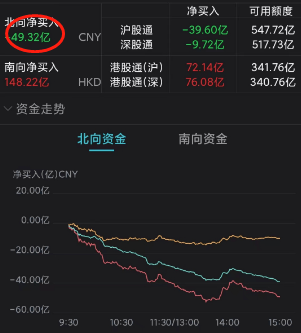 截至收盘,沪指涨0.03%,深成指跌0.37%,创业板指跌1.06%。数据显示,北向资金日内净卖出49.32亿元;其中沪股通净卖出39.6亿元,深股通净卖出9.72亿元。