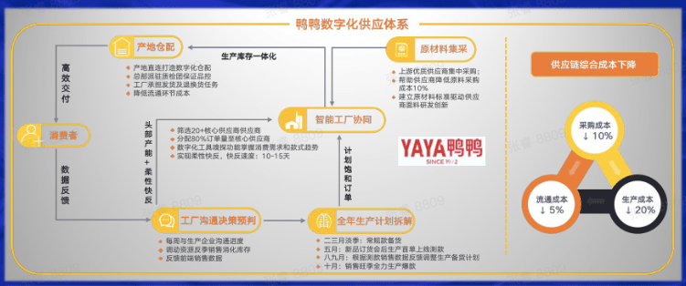 第二个是尽量快速地加快反应。YAYA现在羽绒服装生产周期,传统羽绒服大概是30天,我们现在能做到缩短到10-15天,这背后都是通过数字化方式进行联动的。