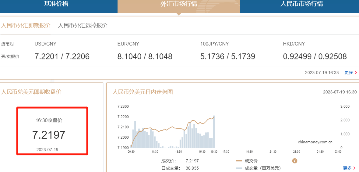 原标题:在岸人民币兑美元收盘报7.2197 较上一交易日下跌480点