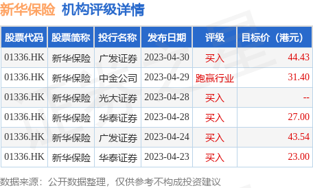 截至2023年7月19日收盘,新华保险(01336.HK)报收于19.1港元,下跌1.75%,换手率0.59%,成交量612.07万股,成交额1.17亿港元。投行对该股的评级以买入为主,近90天内共有5家投行给出买入评级,近90天的目标均价为33.87港元。广发证券最新一份研报给予新华保险买入评级,目标价44.43港元。