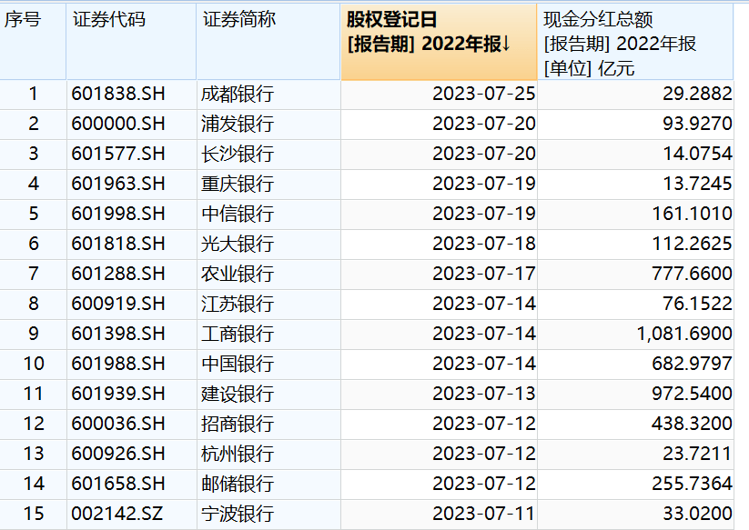 7月18日,农业银行实施分红派息,共计派发现金红利约777.66亿元(含税)。至此,国有六大行合计逾4000亿元现金红包已全部“到账”。数据显示,2022年度上市银行现金分红总额超5800亿元,截至7月19日,在42家上市银行中,除青农商行外,41家银行均公布2022年度分红明细。