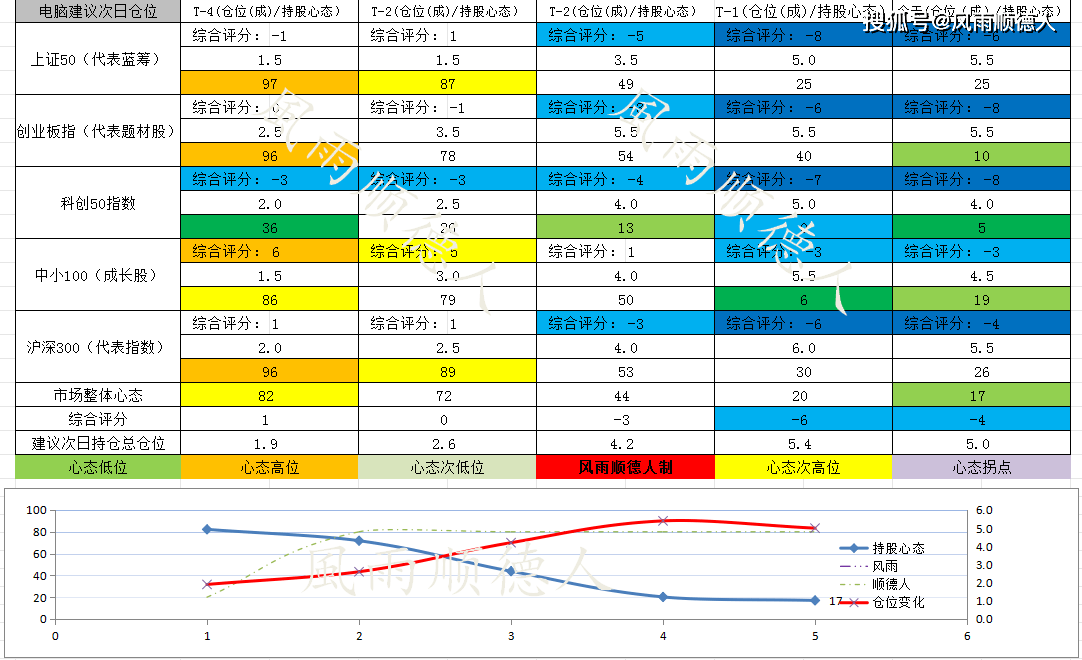 2、仓位参考方面:市场整体心态17,属于中低位心态,电脑建议明天【备注:不是今天】总仓位维持5.0成。