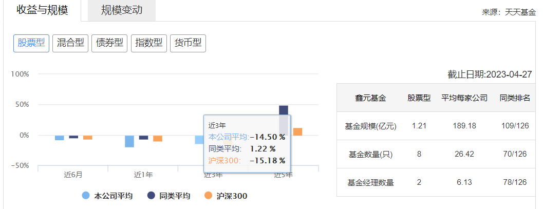由此可见,鑫元基金在权益投资上的短板,不仅体现在产品规模与固收产品的极度悬殊上,而且在投资业绩上也是如此。反过来说,也正是因为权益产品规模很小,也让这家基金躲过了这几年股票市场剧烈波动带来的股票基金净值的大跌。