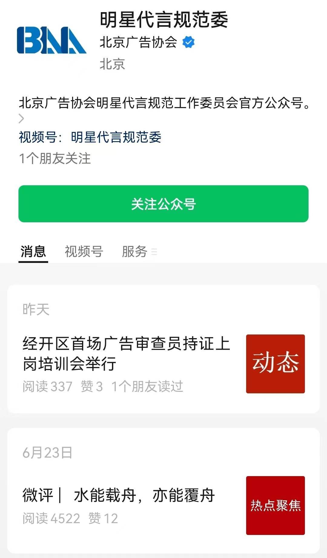 2022年12月6日,北京广告协会明星代言规范工作委员会在北京成立。该协会旨在开展明星广告代言行业自律工作,维护广告市场合理秩序,保障消费者合法权益。