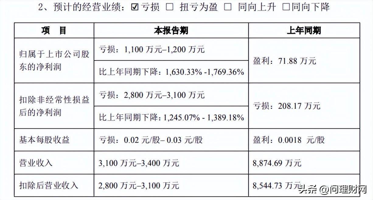 值得注意的是,在7月14日金时科技曾公布了2023年上半年业绩预告,公司预计归母净利润亏损1100万元至1200万元,扣非净利润亏损2800万元至3100万元,以及预计上半年实现营收约3100万元至3400万元……
