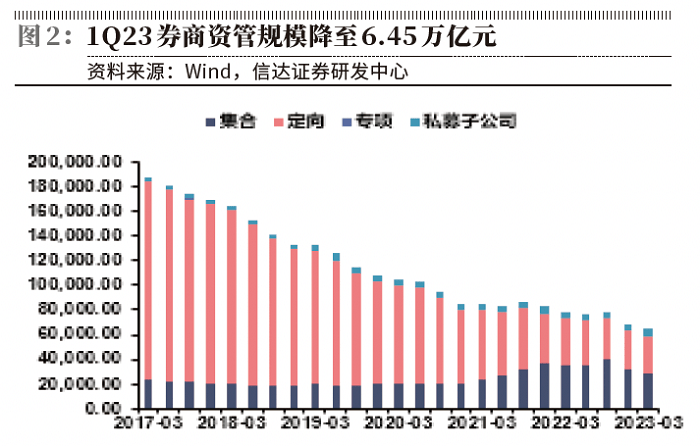 一是公募业绩贡献:截至2022年年末,已有35家上市券商持股公募/资管机构。考虑到单一年度的业绩波动因素,我们拉长时间维度至2020-2022年共计三年,测算费率调整对持股公募券商的业绩影响。针对各上市券商持股公募/资管所发行的主动权益类基金产品,我们假定各年末管理费率>1.2%者均调降费率至1.2%,≤1.2%者维持原费率不变,测算得到三年合计对上市券商净利润贡献减少约86亿元,占35家上市券商三年合计净利润的1.9%,影响相对较小。细分到各家券商来看,部分中小券商及公募贡献较高券商所受影响高于整体平均水平,但绝对视角而言仍影响有限。