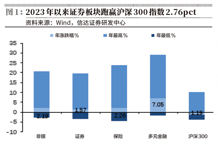 二是代销佣金收入:基于2020-2022年43家上市券商的财务数据,我们测算得到,三年合计代销净收入占证券经纪业务净收入的比重约为11%,占营收的比重约为2%。参考费率降幅,测算或有近20%代销净收入将受影响,则对券商经纪净收入、营收造成的冲击幅度最高仅约为2.3%、0.5%。如若进一步考虑券商代销收入拆分,则影响程度将进一步减小。