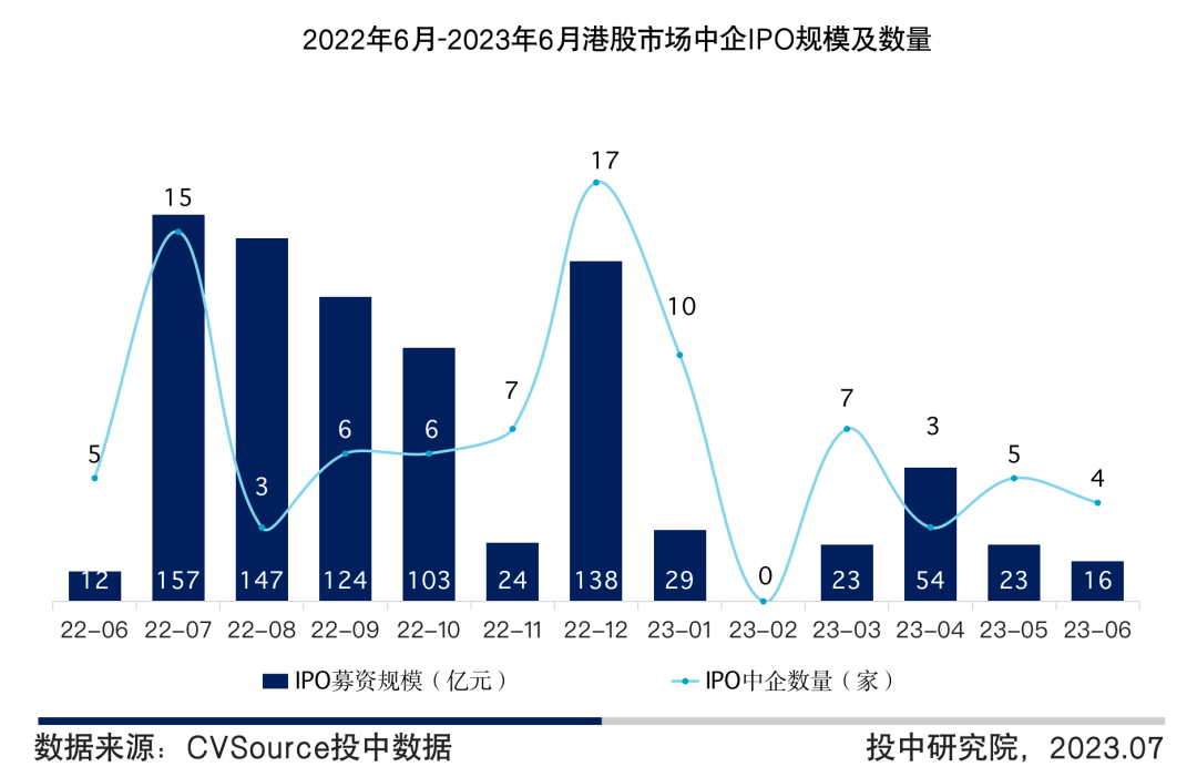 图10 2022年6月-2023年6月港股市场中企IPO规模及数量