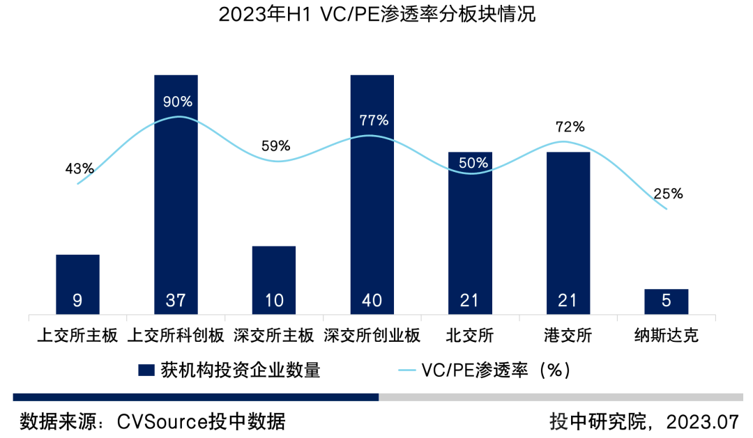 图2 2023年H1 VC/PE渗透率分板块情况