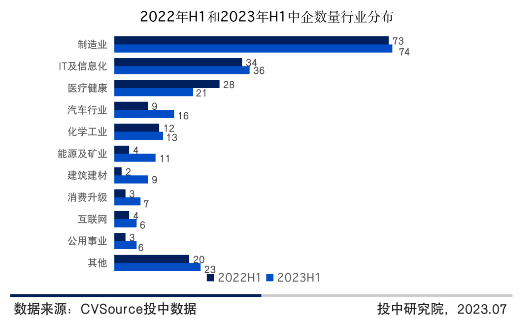 图14 2022年H1和2023年H1中企数量行业分布